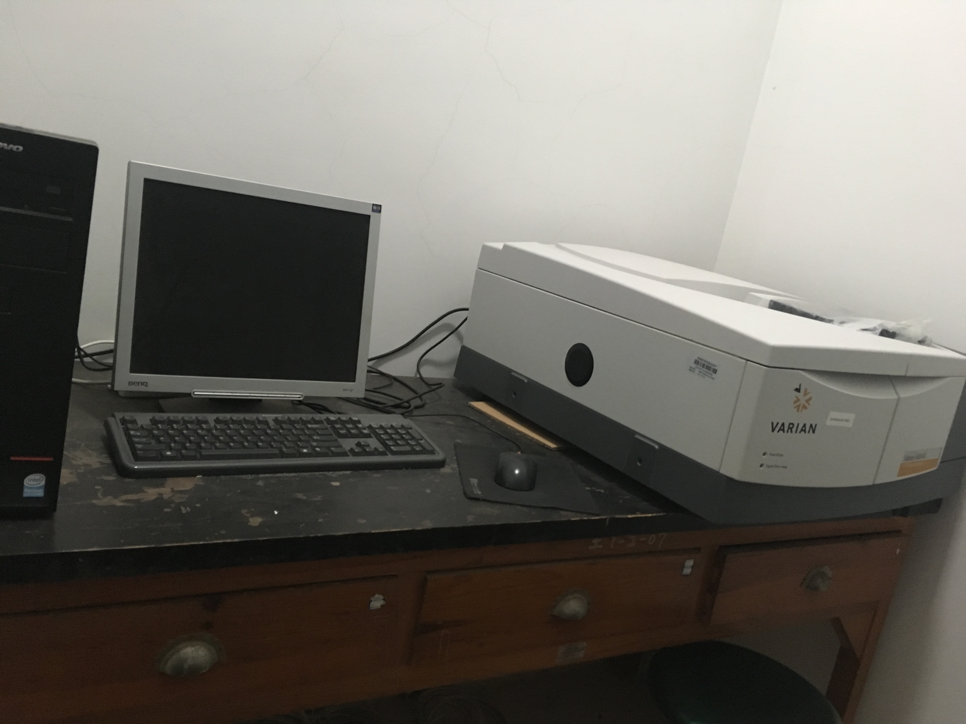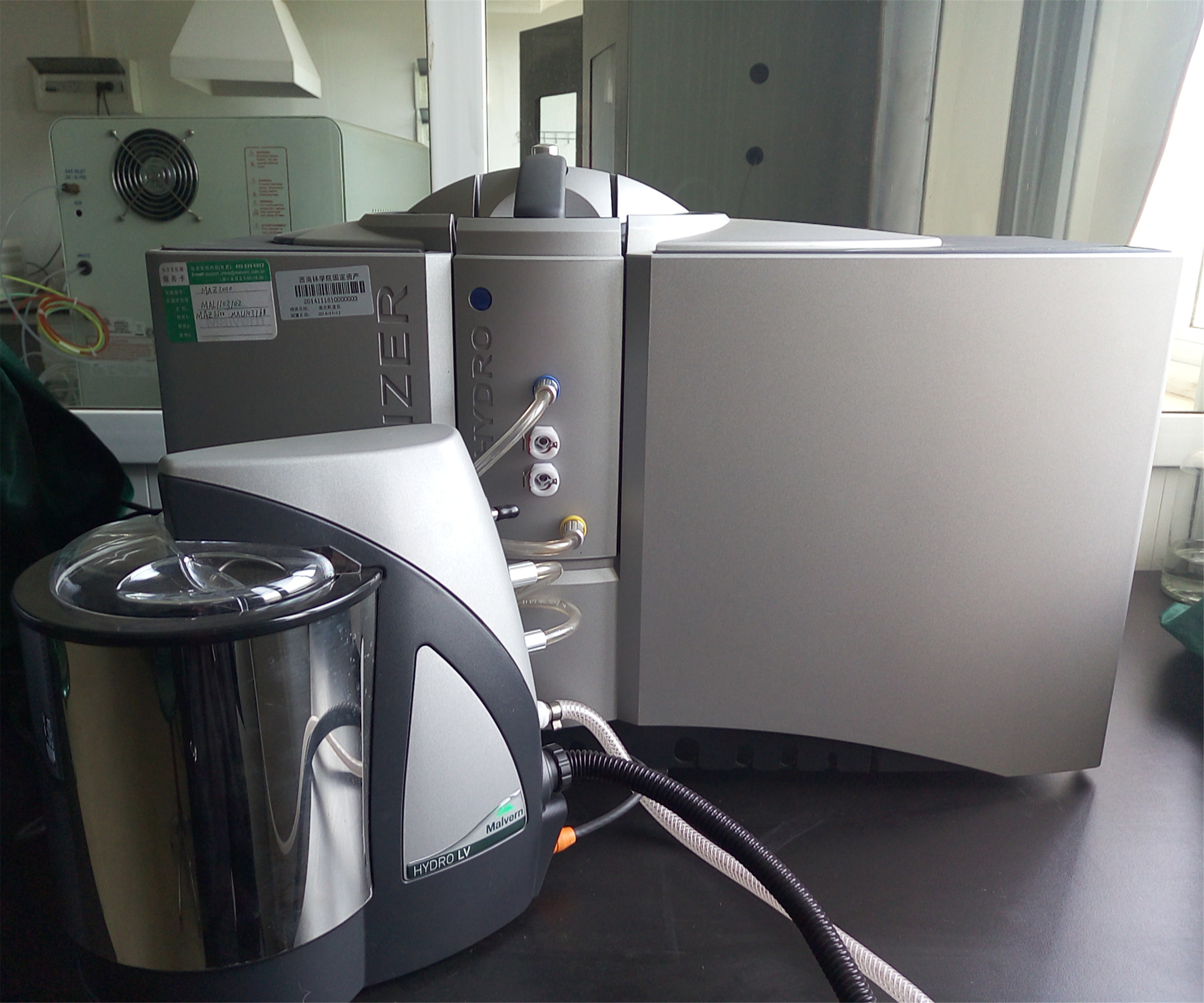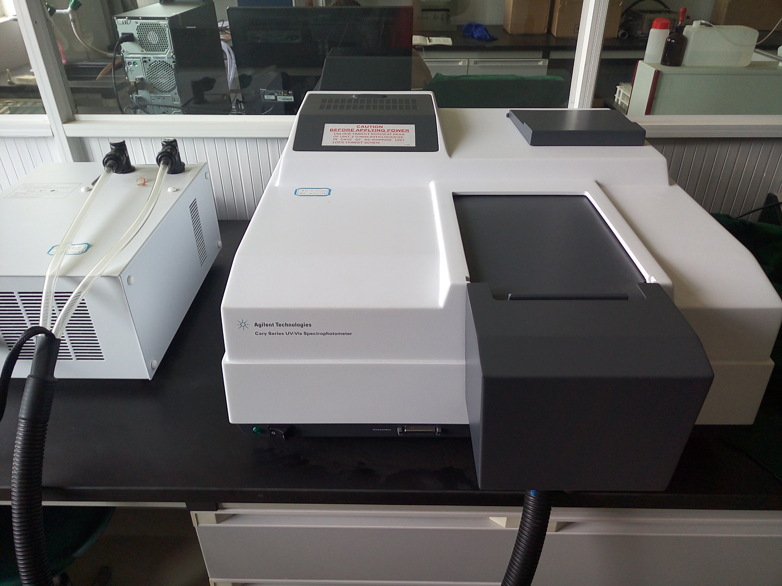 大型仪器实验室常规检测仪器,包括安捷伦710+ETHOS1等离子体发生光谱仪、安捷伦640-IR傅里叶变换近红外光谱仪、北京瑞利WFX-130A原子吸收分光光度计、美国戴安ICS-90离子色谱仪、青岛普仁PIC-10离子色谱仪、岛津GC-14气相色谱仪、美国WATERS515液相色谱仪、美国14-9000-100TOC分析仪、德国WTW OxiTop IS12数字式BOD测定仪、德国WTW Photo Flex水质分析便携实验室、北京普析TU-1810PC紫外可见分光光度计等多种大型进口与国产精密分析仪器。