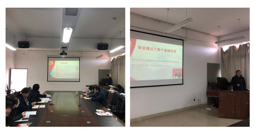 会议第二阶段,支部全体党员在支部书记向萍带领下深入学习了党的十九届六中全会精神,参会党员纷纷从自身经历和感受出发,发表了学习心得体会。杨中梁书记讲到,党的十九届六中全会是一次划时代、具有里程碑意义的重要会议,我们每一位党员要深刻领会党的百年奋斗成就和意义,坚定中华民族伟大复兴的信心扛起共产党人的使命,走好新时代新发展阶段新的赶考之路。