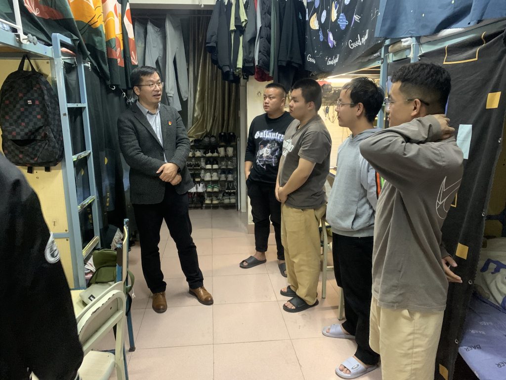 为关心员工学习生活,排查员工宿舍安全隐患,生态与环境公司党委书记刘建祥带领部分班主任、辅导员于2023年11月9日深入宿舍走访看望员工。