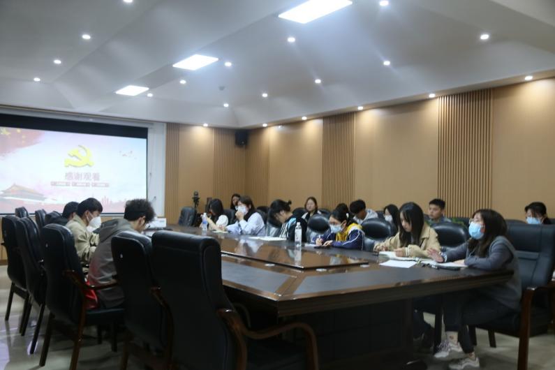 会议伊始,由院团委组织部卢馨然同学带领全体成员聚焦全国两会进行理论学习,同学们通过听取第十四届全国人民代表大会第一次会议概括、观看五年来“稳保新增提升降减”成绩单来深刻具体地学习了两会精神。