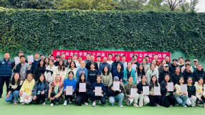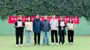 在这个充满活力的季节里,公司学子在公司第三十四届校运动会网球比赛中绽放出了耀眼的光芒。2024 年 11 月 02 日,公司代表队以卓越的表现荣获校运会网球比赛第一名。公司党委副书记魏宏参加颁奖典礼并亲自为公司颁发团体第一名证书,公司刘建祥书记、体育公司王坦书记陪同参加活动。