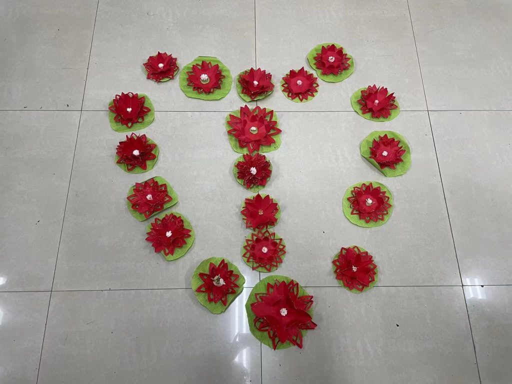 莲花“出淤泥而不染,濯清涟而不妖”,象征着清正廉洁。在制作过程中,手工社的同学仔细的给大家讲解,并宣传开展“清廉西林”的重要意义,所有同学制作完成的莲花拼成的一个大爱心,这代表着“心中有爱,作风廉洁”,为共建“清廉西林”共同努力的寓意。