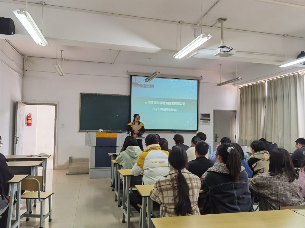 在疫情防控常态工作下,为最大程度降低疫情对就业的影响,推进2021届毕业生就业工作顺利开展。2020年10月21日公司在工学楼210举行了本学期第一次线下宣讲会。此次宣讲会邀请到了云南环绿环境检测技术有限公司,公司党委副书记邓志华,就业联络员杨益琼以及2021届毕业生参加本次宣讲会。