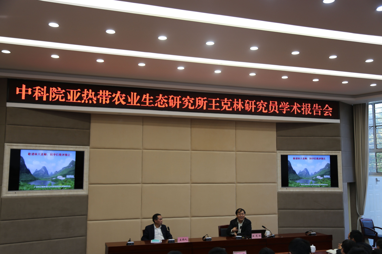 2019年11月28日下午,受郭辉军董事长邀请,中科院亚热带农业生态研究所原所长王克林研究员在双创园二楼报告厅